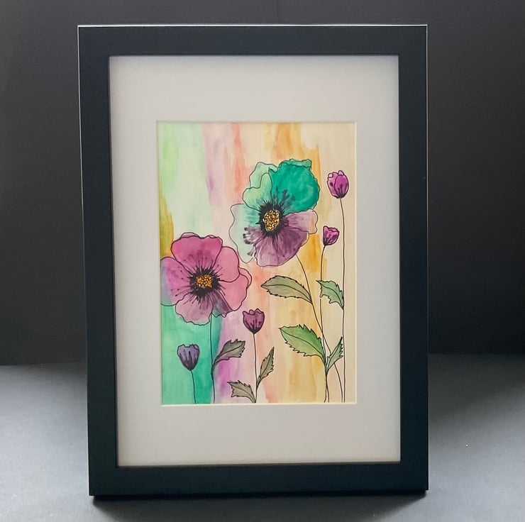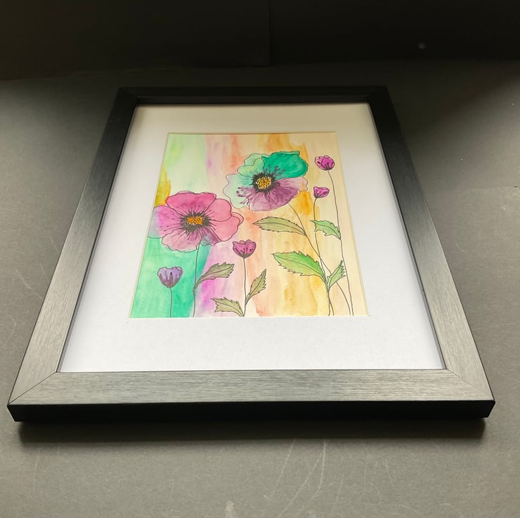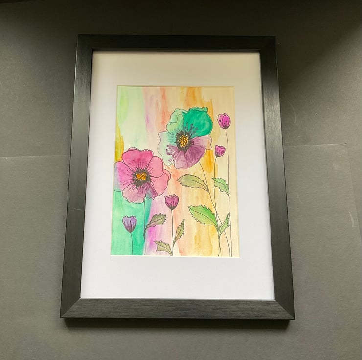 The picture is presented in a white card mount ,and the painting itself is A5 and in a A4 frame .The frame can be hung or free standing ,whichever you choose The painting would make a lovely gift for a friend ,relative or maybe someone who enjoys gardening