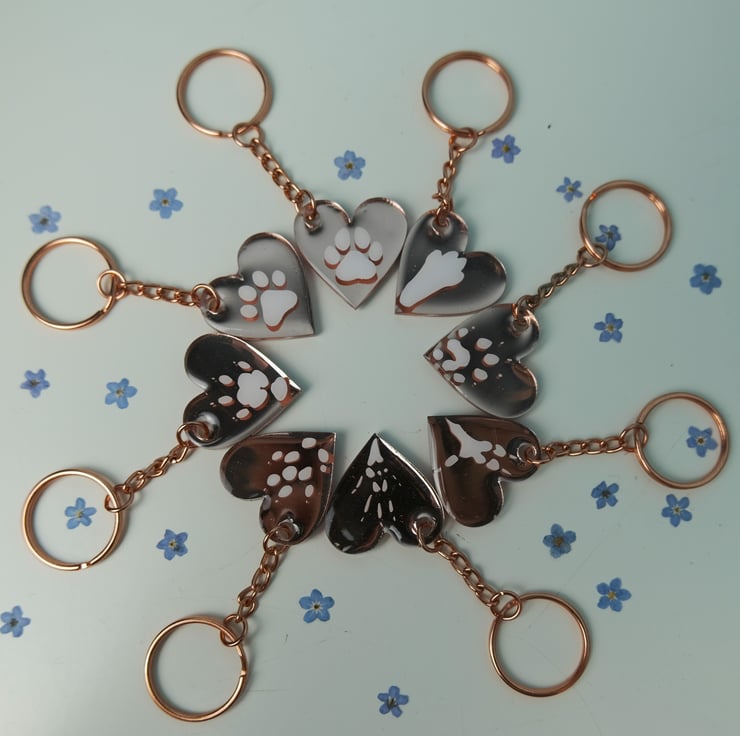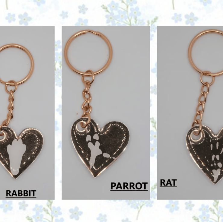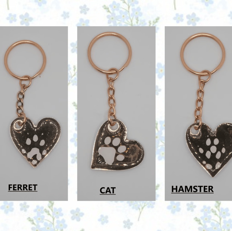 After owning rats myself and unfortunately losing many of them recently I wanted to create something that I could keep with me to remember them all by. I saw the forget me nots blooming in my garden had the idea to make these paw print keyrings.