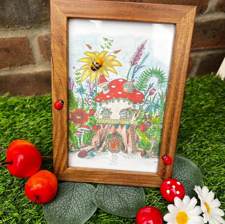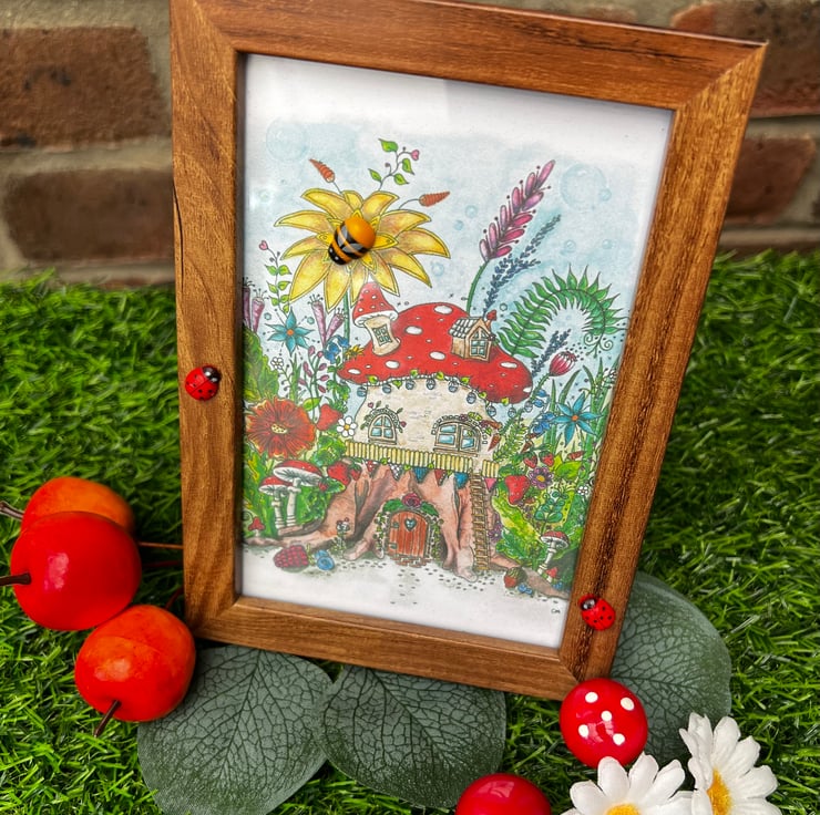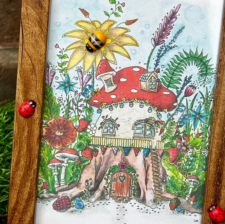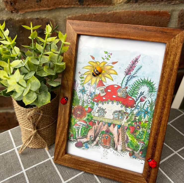 This craft is handmade, the fairy house illustration is a print of my own work which is drawn using pen and watercolour pencils.