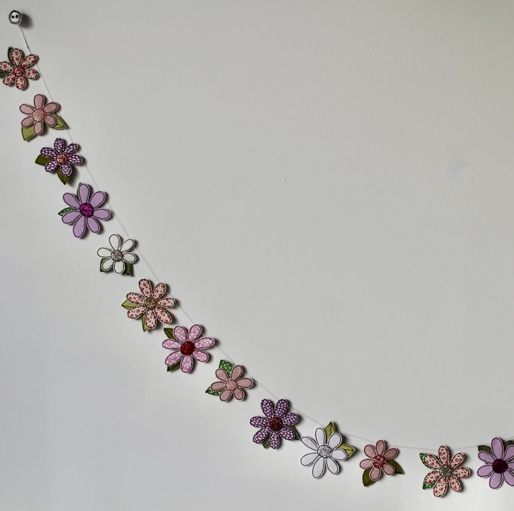 The blooms are suspended on a linen thread and can be moved along the length, allowing a little creativity with spacing.