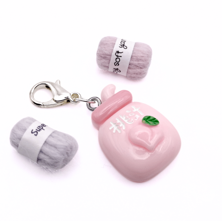 Cute kawaii pink strawberry milk drink stitch marker, attached to a silver-plated lobster clasp. The drink charm is made from resin, has lovely detail and is perfect for all your knitting projects.