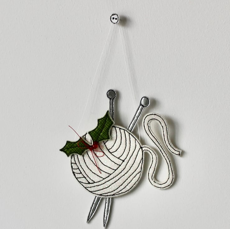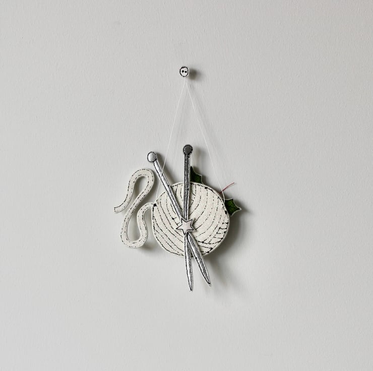 'Wool, Knitting Needles and Holly'- Hanging Decoration