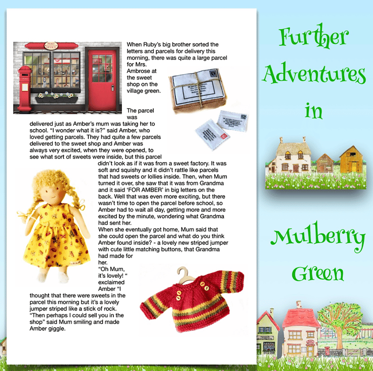 There are other children in Maisy’s class at school - Violet, Billy with his pet rabbit, Amber, Tilly, Rosie and her kittens, Amelia, Ruby, Marigold, Bobby with Max the dog, and the twins Oliver and Olivia, who have a puppy called Oscar. The dolls are all 26cm tall and baby Daisy is 16cm. Maisy and Mo love nothing more than having adventures with their friends. You can read about their adventures on my Facebook and Instagram pages - Maisy Muffin Rag Dolls and on my Mulberry Green Pinterest boards.