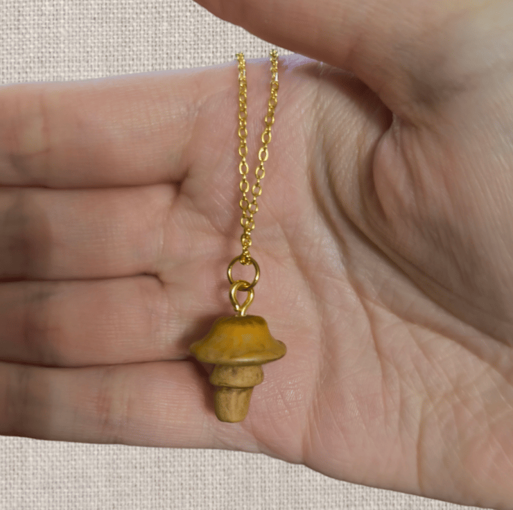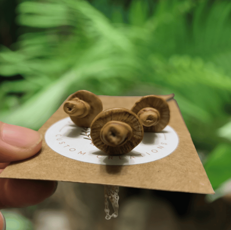 Handmade from polymer clay and painted with acrylic paints, the top of the mushroom is coated in resin to protect and give it a realistic finish