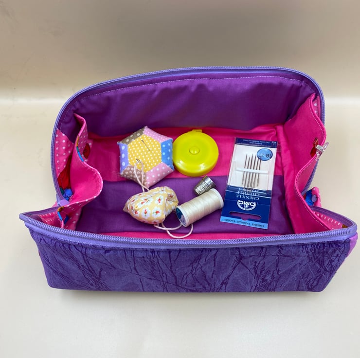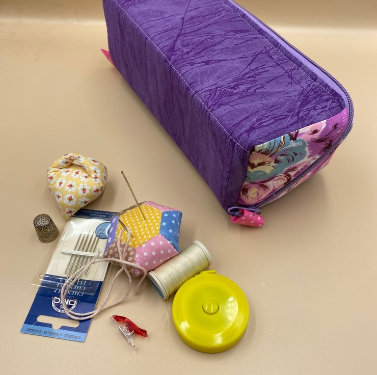 This style of sewing tools case is one that unzips and opens out into a tray to keep everything together as you work, whether at your machine or sitting on a settee.