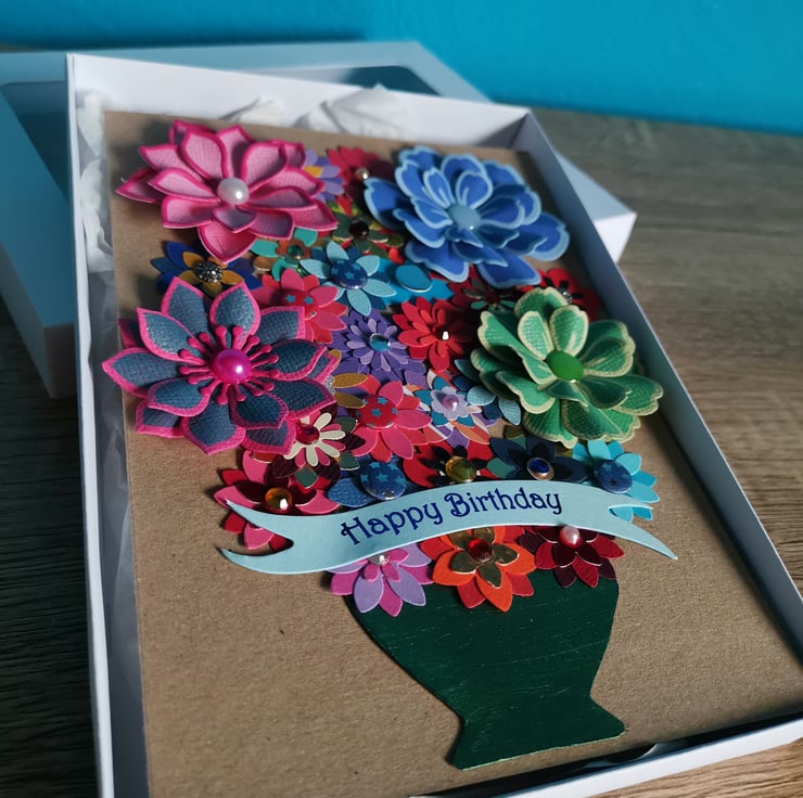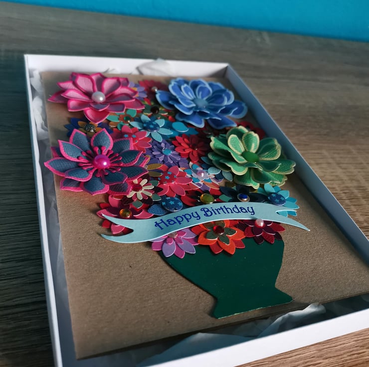 Flower birthday card  - Handmade special keepsake luxury  - boxed