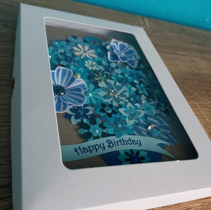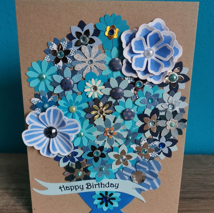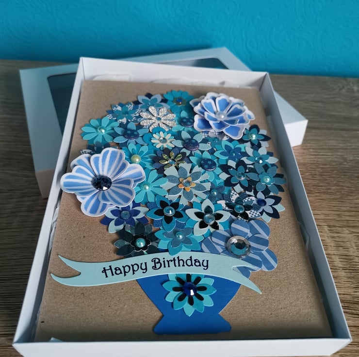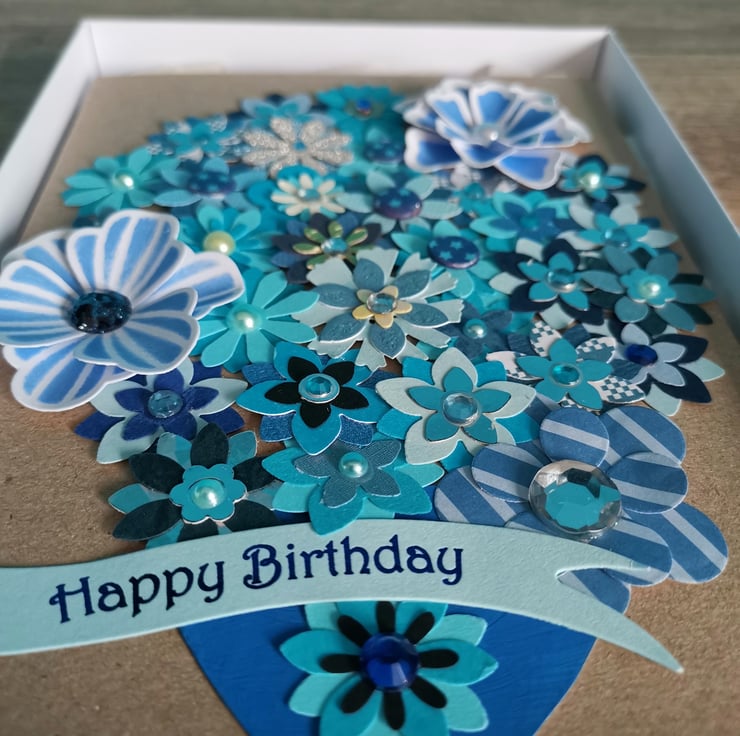 Flower birthday card - Floral handmade special luxury keepsake - blue flowers