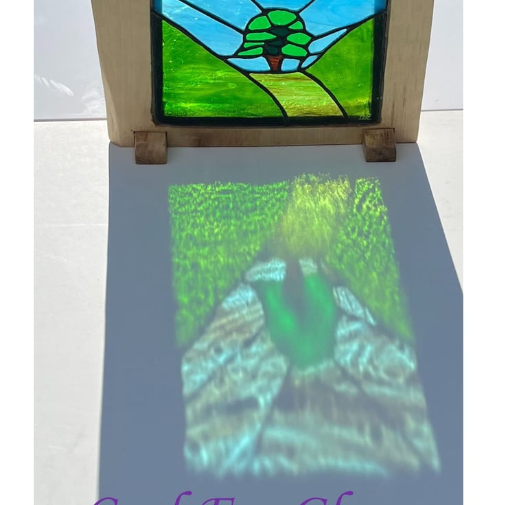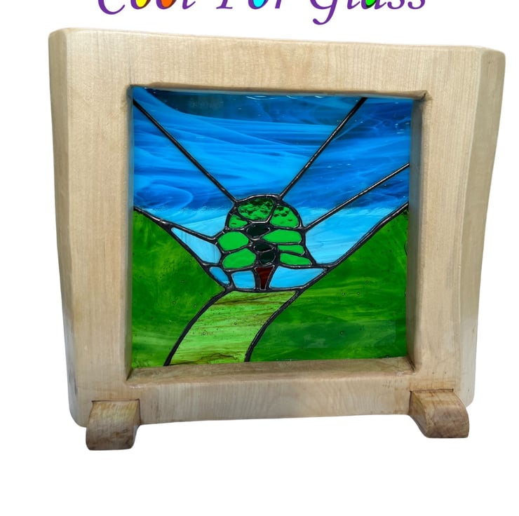 Sycamore Gap holds fond memories from many and for some has been their special place. The iconic tree has been lost but the love for it continues and is depicted in my stained glass. This is my own pattern and each one I make is unique with the selection of glass and the look of the wood frame.
