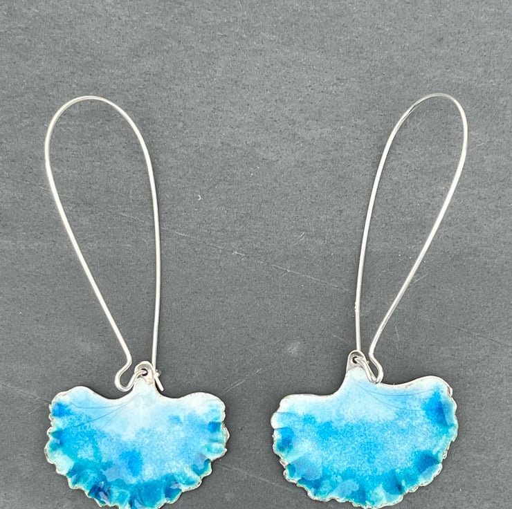 These Gingko Leaf Earrings have been handcrafted by Michelle using Sterling Silver and beautiful blue enamels. They have a width of approximately: 2cms and hang on long Sterling Silver hooks. If you would prefer them on short standard earring hooks please let Michelle know at Checkout.