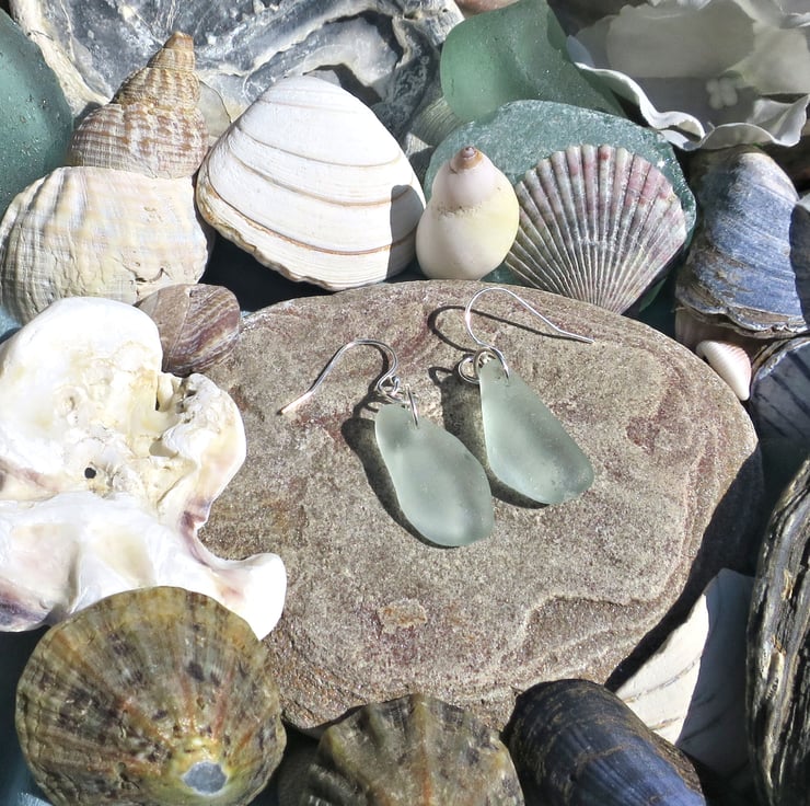 These earrings are made with authentic sea tumbled glass with softly rounded edges and a gently frosted surface. The sea glass has been lightly oiled to preserve the "straight from the sea" appearance and bring out the beautiful natural colours. Each piece bears the marks of its ocean journey, with small pits and marks making a unique sea ‘jewel’. These ‘mermaid tears’ are handpicked by me from the rugged shores of the east coast of Scotland.