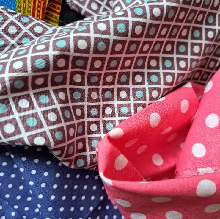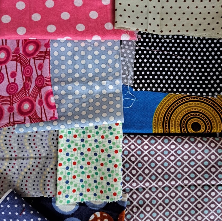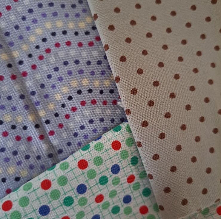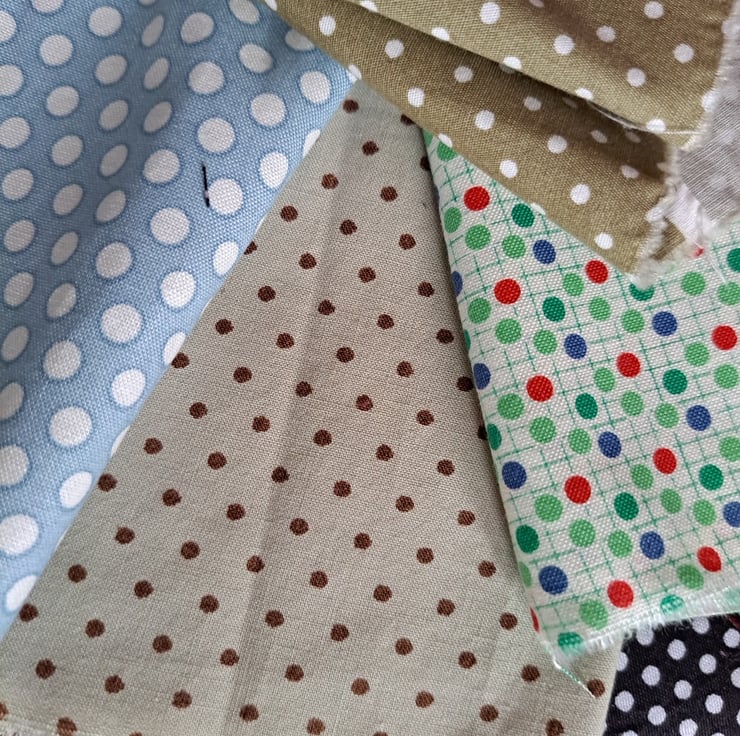 Thirteen pieces of spotty cotton scraps, large and small. Irresistible.