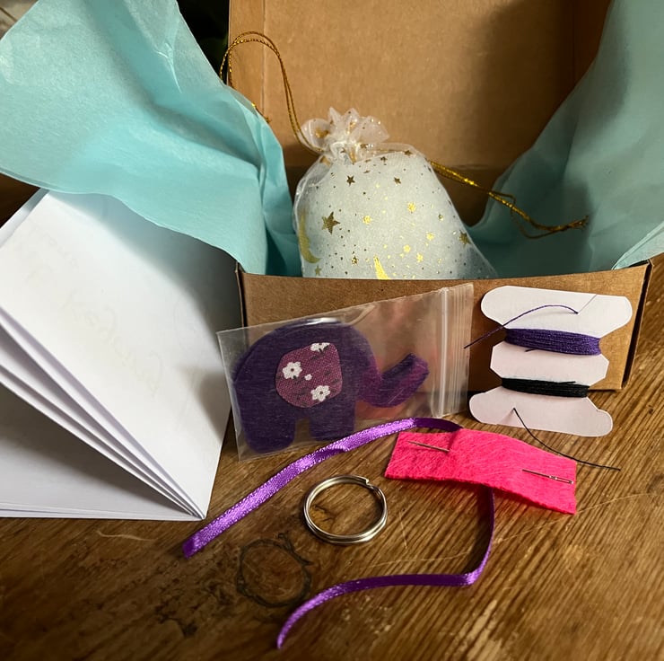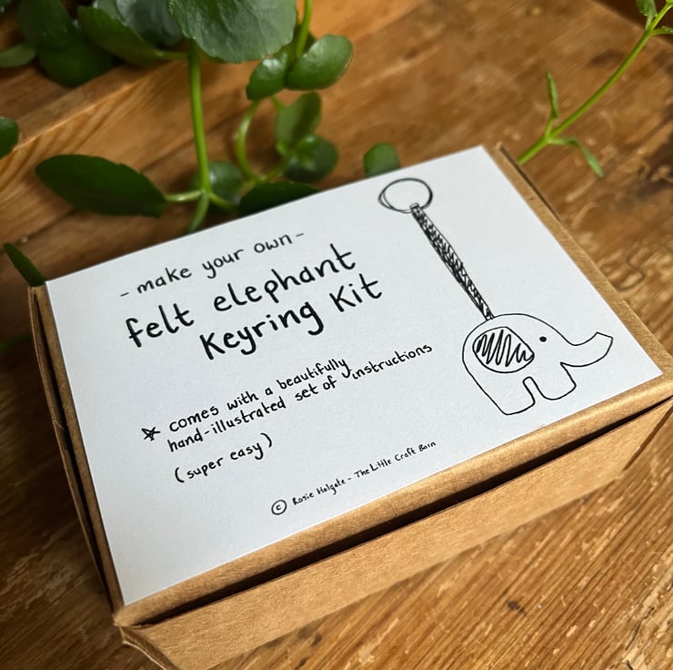 These handmade little kits are designed to be super easy. They each come with a set of beautifully hand-illustrated instructions. These boxes come with all the pieces you will need to make your own felt elephant keyring, including felt, ribbon, needle, keyring, thread, stuffing and instructions. There are two colour options for the elephant kits: pink or purple.