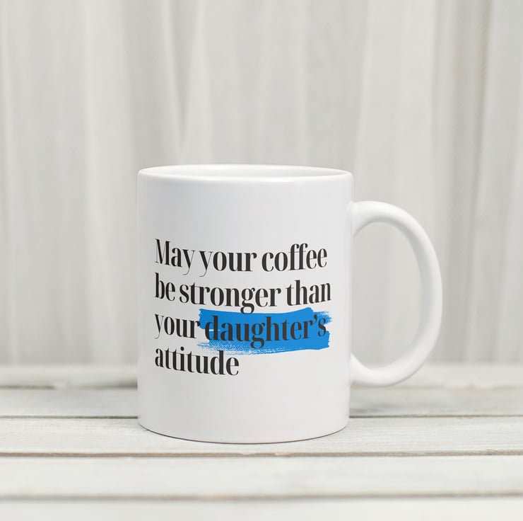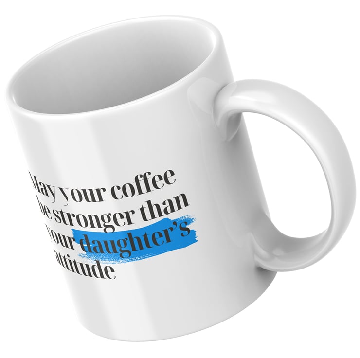 "May your coffee be stronger than your daughter's attitude" - the ultimate Father's Day mantra captured on this fun and sassy mug! Perfect for the dad who knows a thing or two about dealing with a strong-willed daughter, this mug is a humorous nod to the challenges and joys of fatherhood. With its bold design and witty message, it's the perfect way to show your dad that you appreciate his strength and sense of humor in handling any situation. Fill it with his favorite brew and give him a chuckle on Father's Day!"