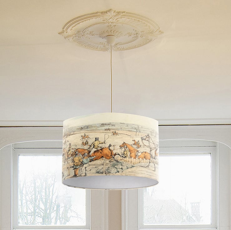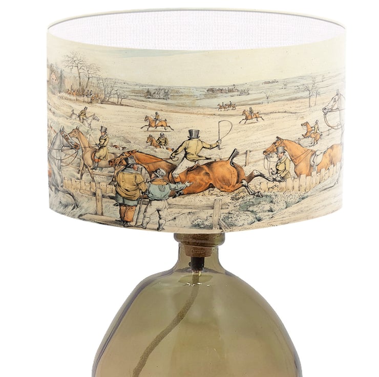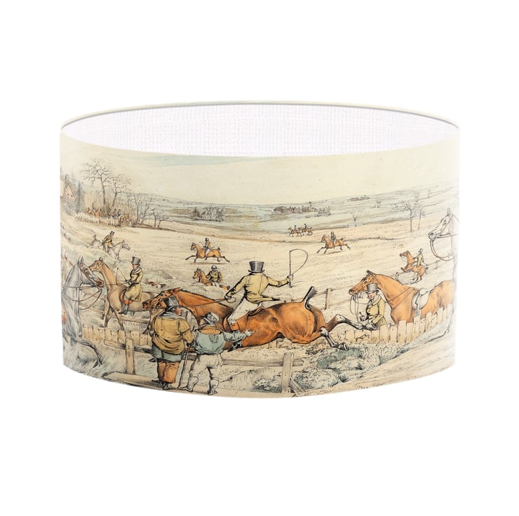 Lampshades don't have to plain and boring. Light up your room in style, color and design. This lampshade is printed with a beautiful fine art print of a hunting scene.