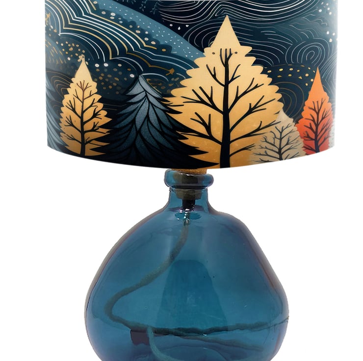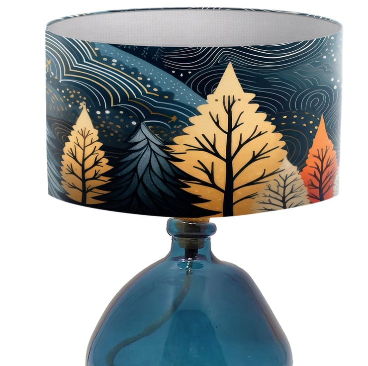 Contemporary Lampshade with Woodland Print - Woodland Illustration Lampshade