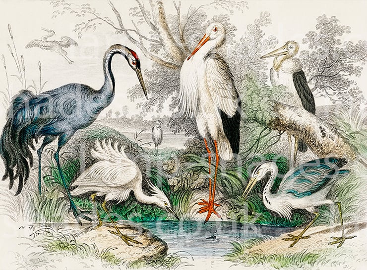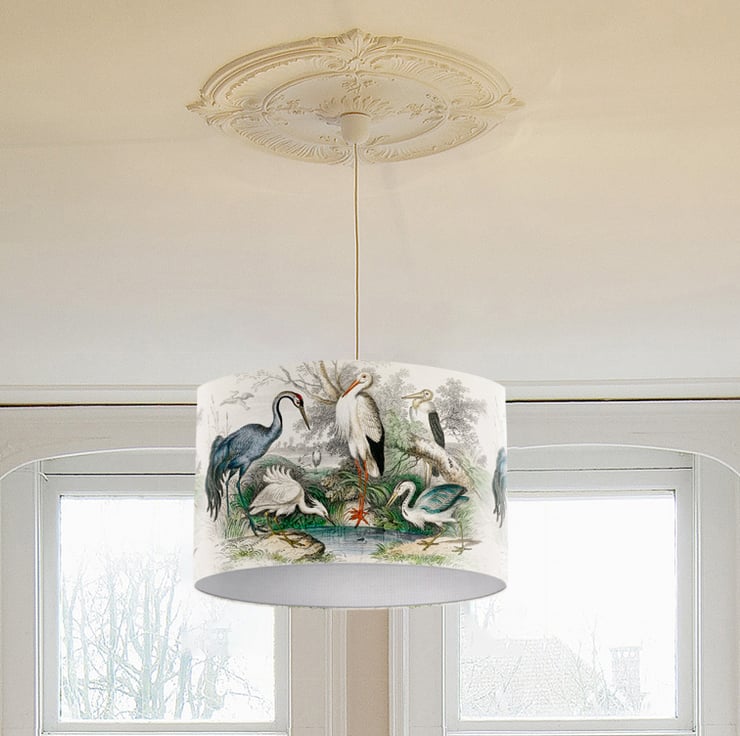 Exotic Bird Print Lampshade, Vintage Bird Print Lampshade