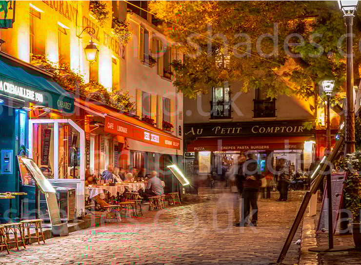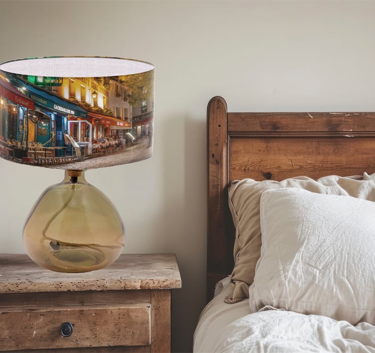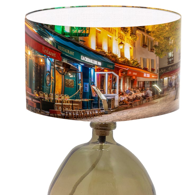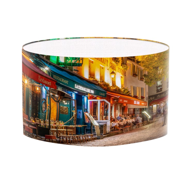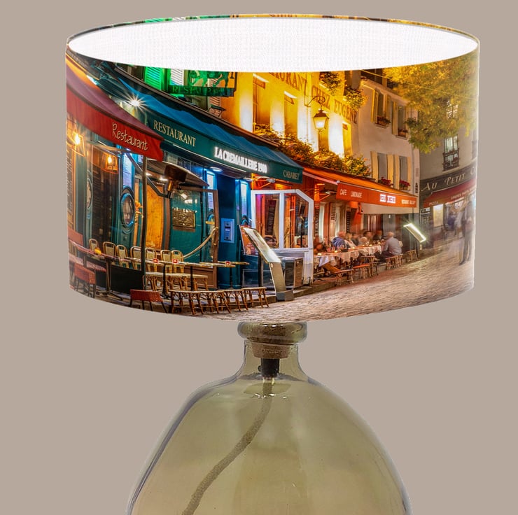 Lampshades don't have to plain and boring. Light up your room in style, color and design. This lampshade is printed with a beautiful photographic shot of Paris Street Culture at night.
