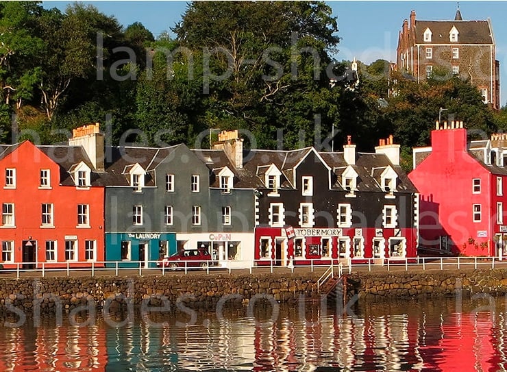 Full Colour Photographic Lampshade featuring Tobermory, Isle of Mull. Fine Art Printed and fully wrapped Shade.