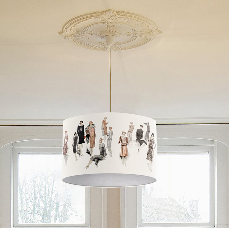 Lampshades don't have to plain and boring. Light up your room in style, color and design. This lampshade is printed with a fun vintage fashion print.