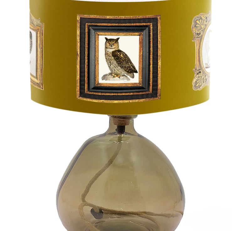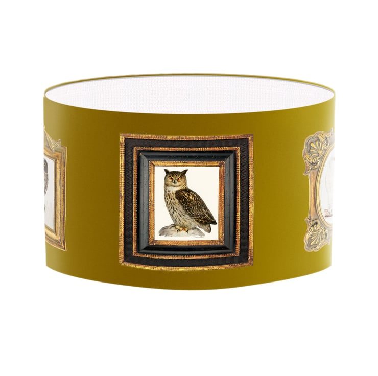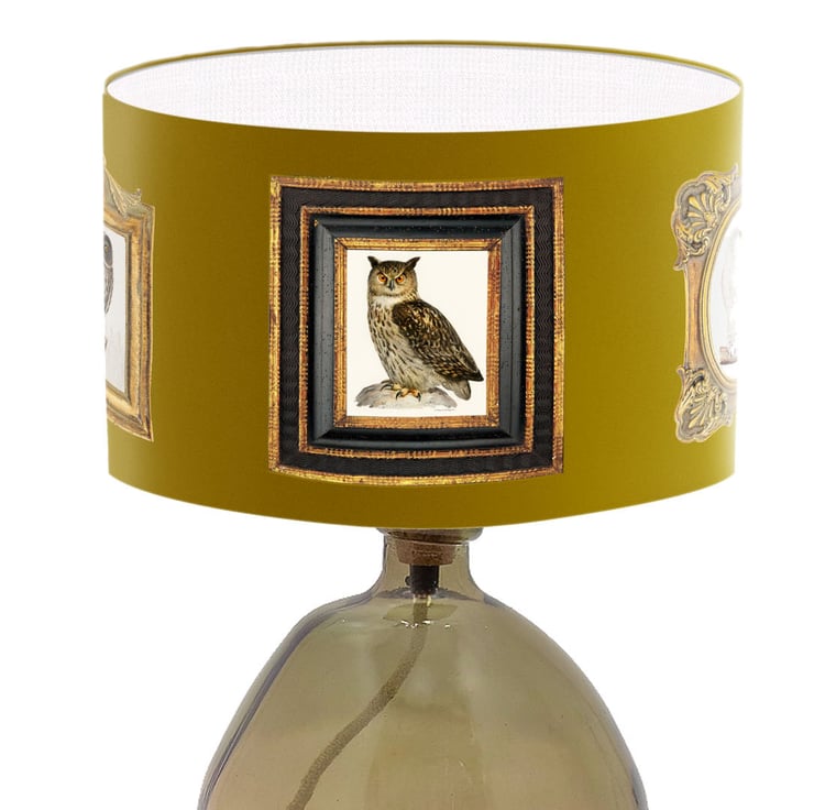 Lampshades don't have to plain and boring. Light up your room in style, color and design. This lampshade is printed with a classic framed Owl print.