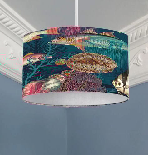 Lampshades don't have to plain and boring. Light up your room in style, color and design. This lampshade is printed with a colorful print of Tropical Fish