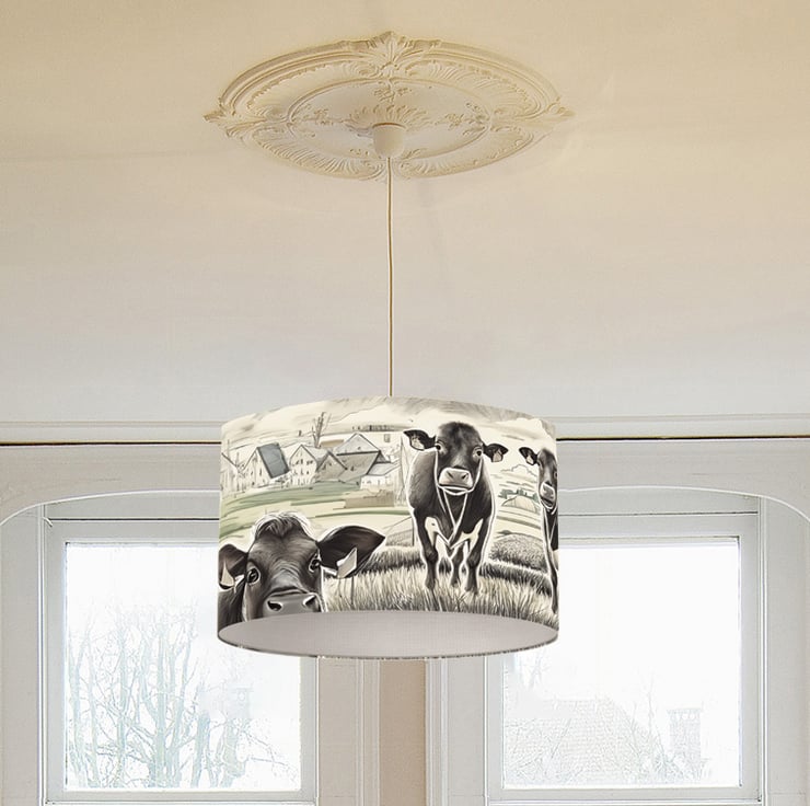 Cow Design Lampshade Art Lampshade - Trendy Lampshade - Funky Cow Art Lampshade