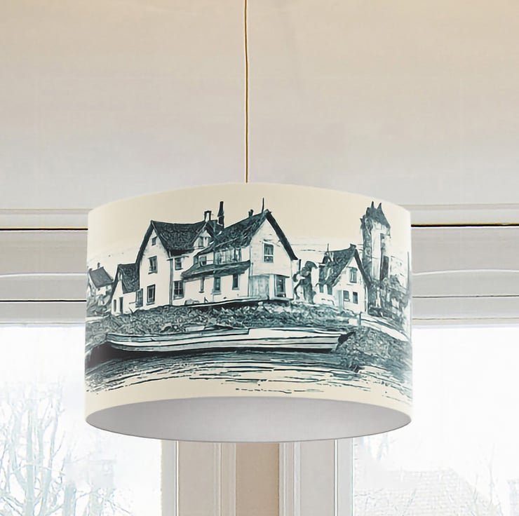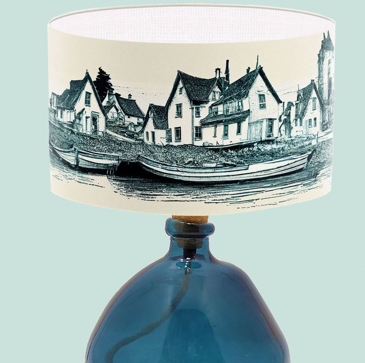 LampShades don't have to plain and boring. Light up your room in style, colour and design. This lampshade is printed with a beautiful coastal illustration.