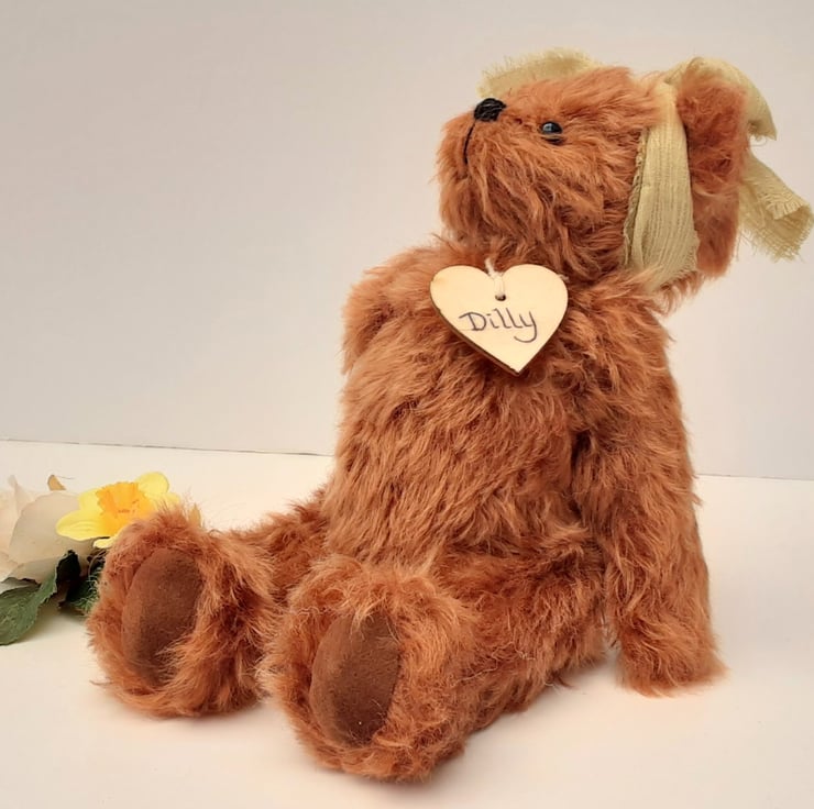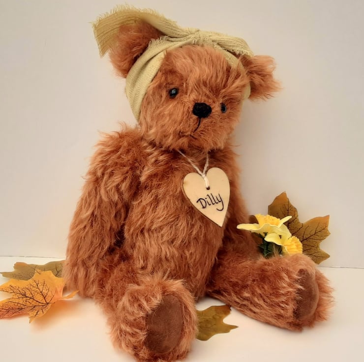 Meet Dilly, a beautiful artist bear handmade from luxury Helmbold 25mm whirl mohair in a rich paprika/copper shade, a lovely pile with a soft wave.