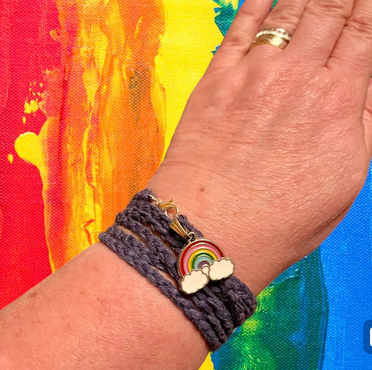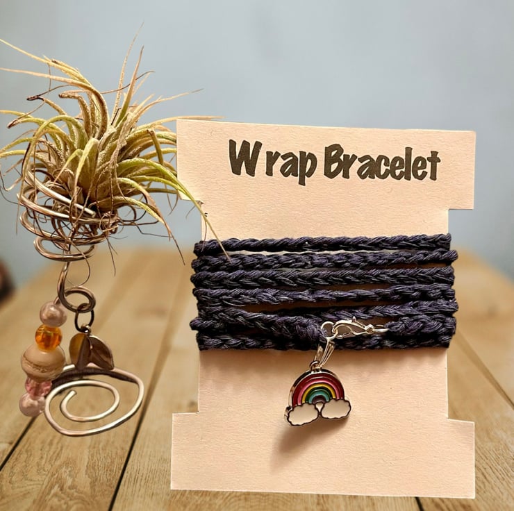 Each bracelet has a rainbow charm and a lobster clasp and wear well due to the cotton blend yarn and can get wet and dries quickly. I have been wearing this version of wrap bracelet for a while now and it is soft, light and comfortable to wear. I forget I have it on and has been worn during all types of weather as well as when doing all types of activities including washing up and showering!