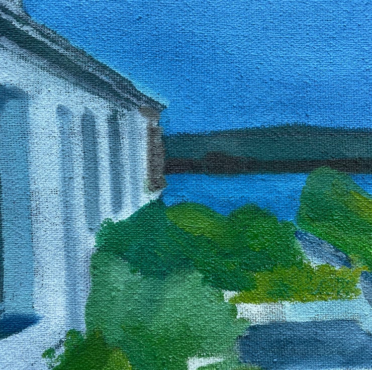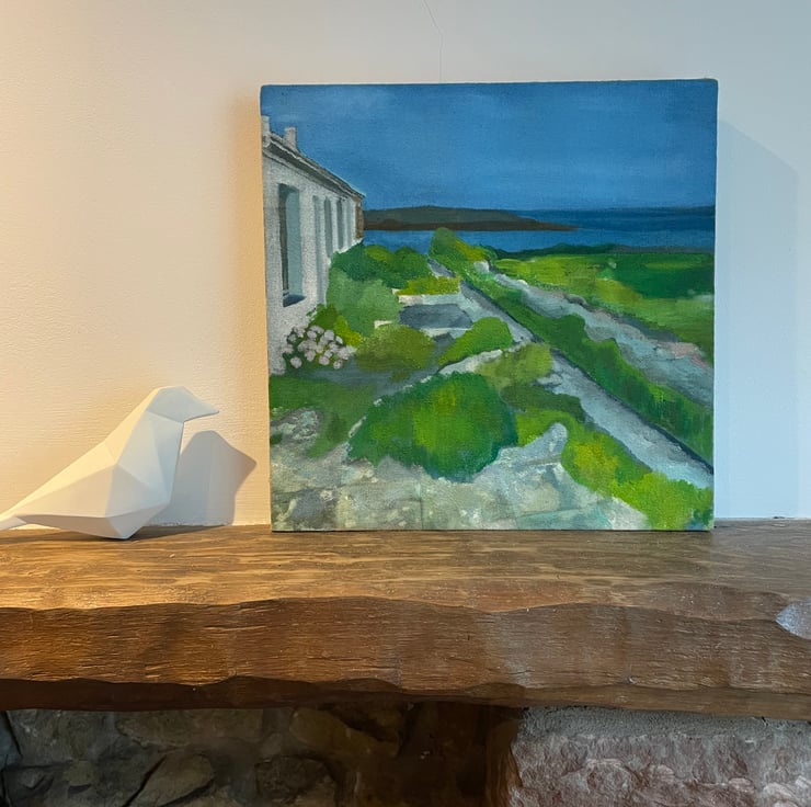 This is a beautiful part of the Anglesey coast in Moelfre, we stayed in the converted fisherman cottages on the left on holiday. I've been coming to Anglesey since I was a baby and my children love it there just as much as I always did. We were so lucky to have a 30 second walk onto the beach here- and a view so beautiful I had to paint it!