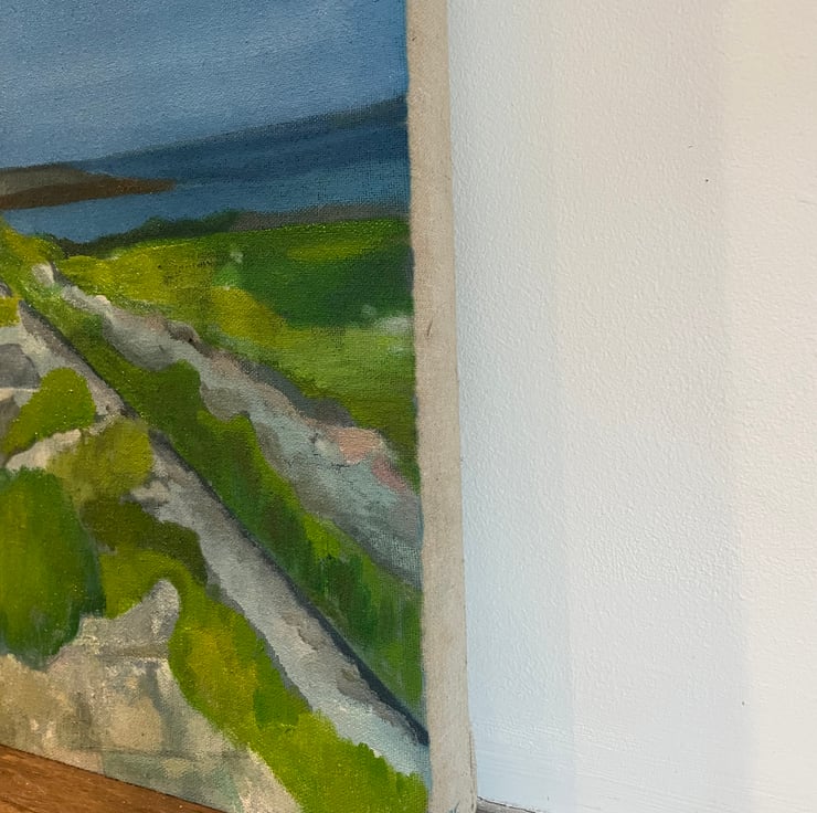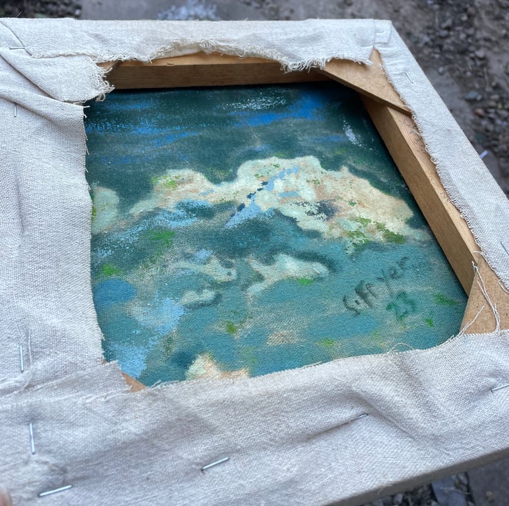 Oil painting on raw linen, stretched over handmade, wooden stretcher.