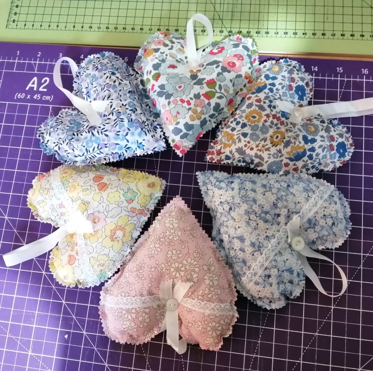 A beautifull Lavender scented stuffed hanging heart made in a Liberty of London Tana Lawn fabric. I have made six hanging hearts in total all listed individually, and in different liberty fabrics Don't forget to checkout my other listings. You will only pay postage for one even if you buy more then one. These make fabulous gifts, and hang anywhere in the home.