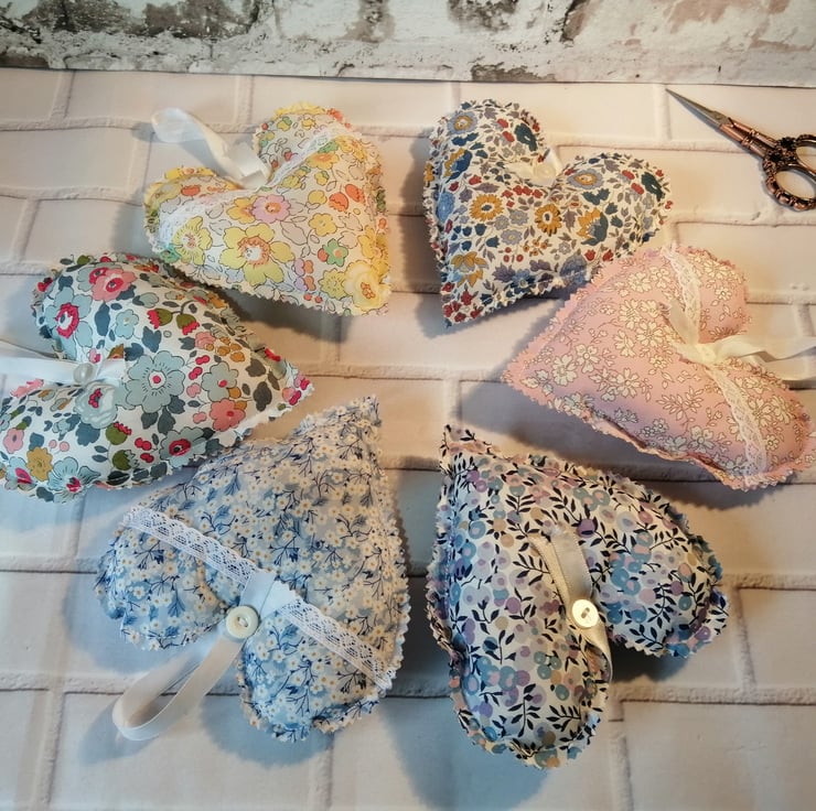 A beautifull Lavender scented stuffed hanging heart made in a Liberty of London Tana Lawn fabric. I have made six hanging hearts in total all listed individually, and in different liberty fabrics Don't forget to checkout my other listings. You will only pay postage for one even if you buy more then one. These make fabulous gifts, and hang anywhere in the home.