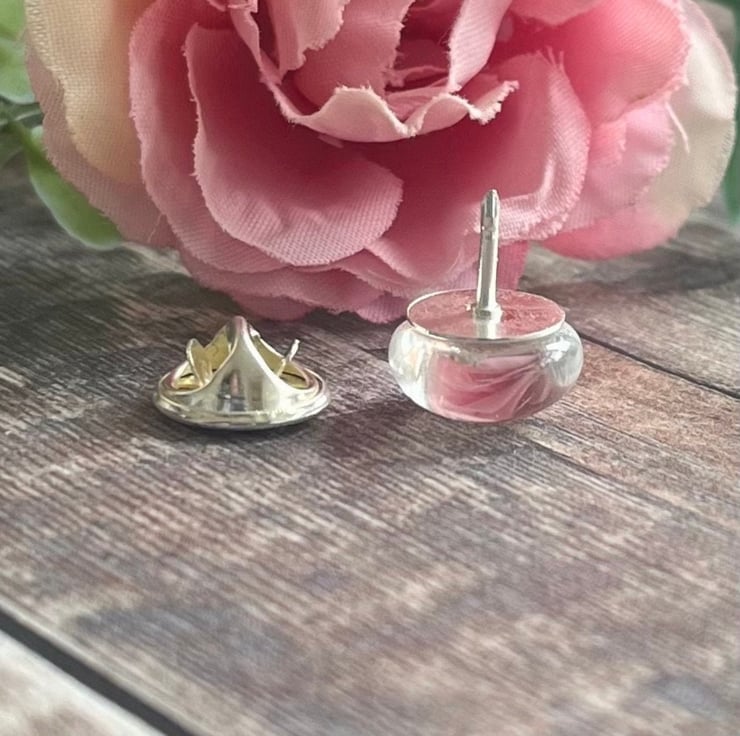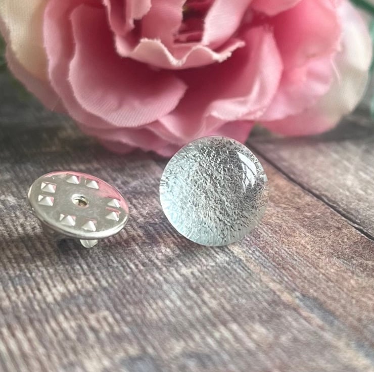 Simply pin the sparkly side to the front of your clothing and attach the flat pad to the rear of the post. To release, just squeeze the two metal brackets behind together and the front to allow the back plate to separate.