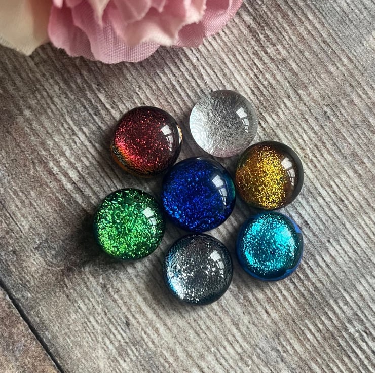 Photos of dichroic glass are difficult to capture the true beauty, but I can assure you, you will be amazed at the sparkly qualities and depth of colour.