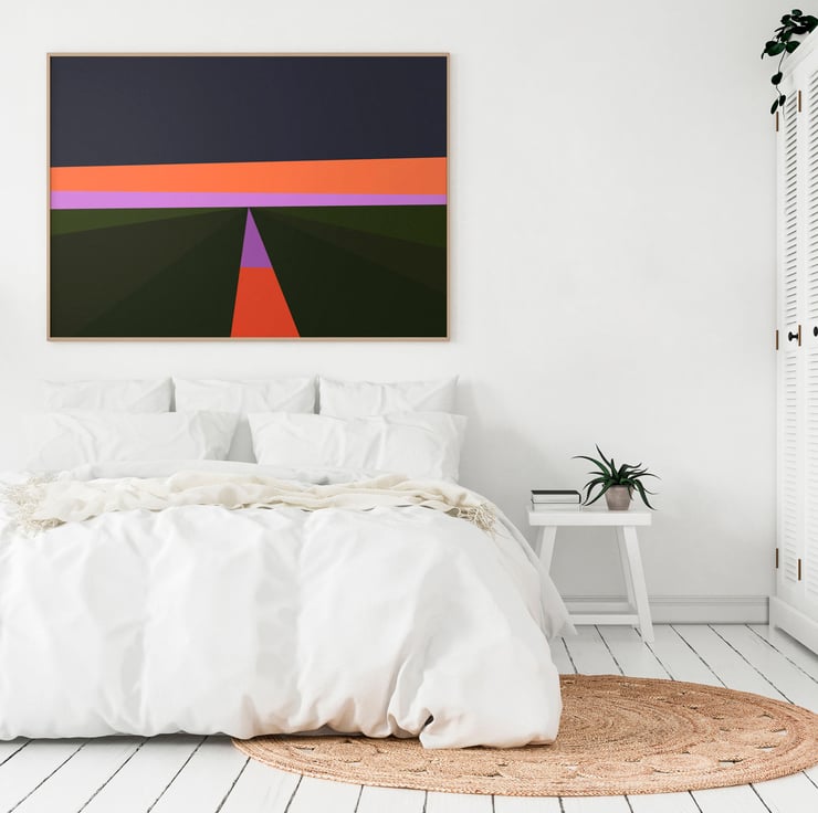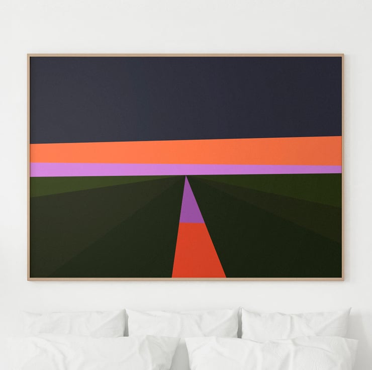 This painting features a contemporary geometric design inspired by the beauty of Irrigation Canals at Sunset. The abstract pattern showcases an intricate interplay of shapes, colours, and lines to create a visually stunning image that captures the essence of this breathtaking scene. The bold, modern style adds a touch of sophistication to any room.
