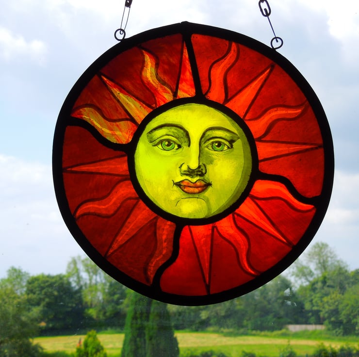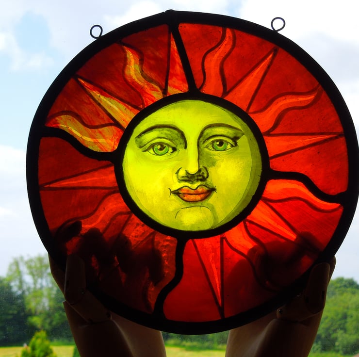 "As I sat in my studio, surrounded by scraps of glass and half-finished projects, I felt a spark of creativity ignite within me. I thought about the simple joys in life - a warm sunny day, a child's giggles, and a smile. Suddenly, I envisioned a stained glass suncatcher that captured the essence of happiness: a sun with a smiley face. The idea seemed ridiculous, yet thrilling. I couldn't wait to bring this whimsical concept to life, infusing it with my own sense of humor and playfulness. With each cut and piece of glass, I felt my inspiration grow."
