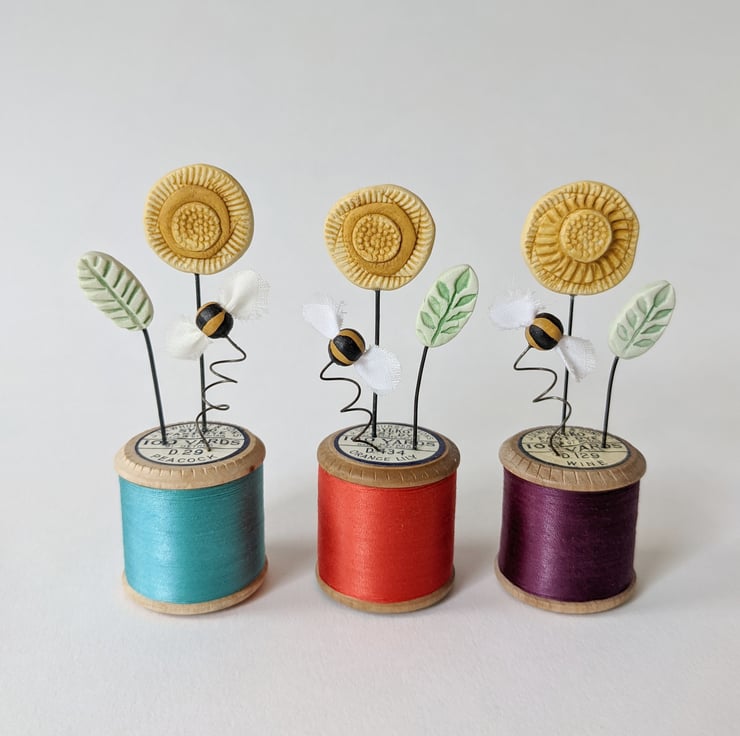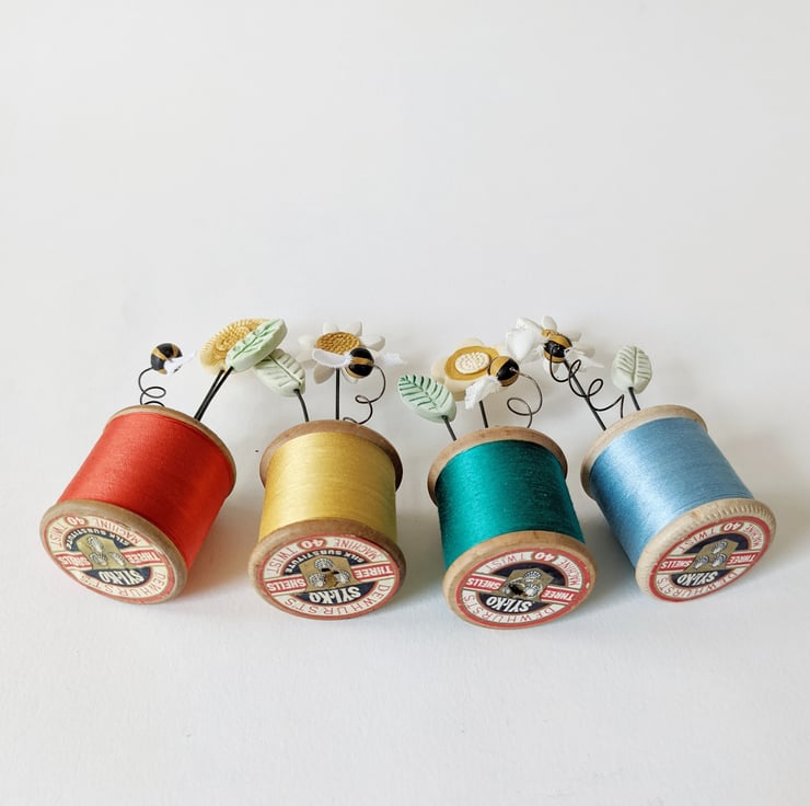 I love finding old bobbins on rummaging trips! The tiny bee bounces on top.