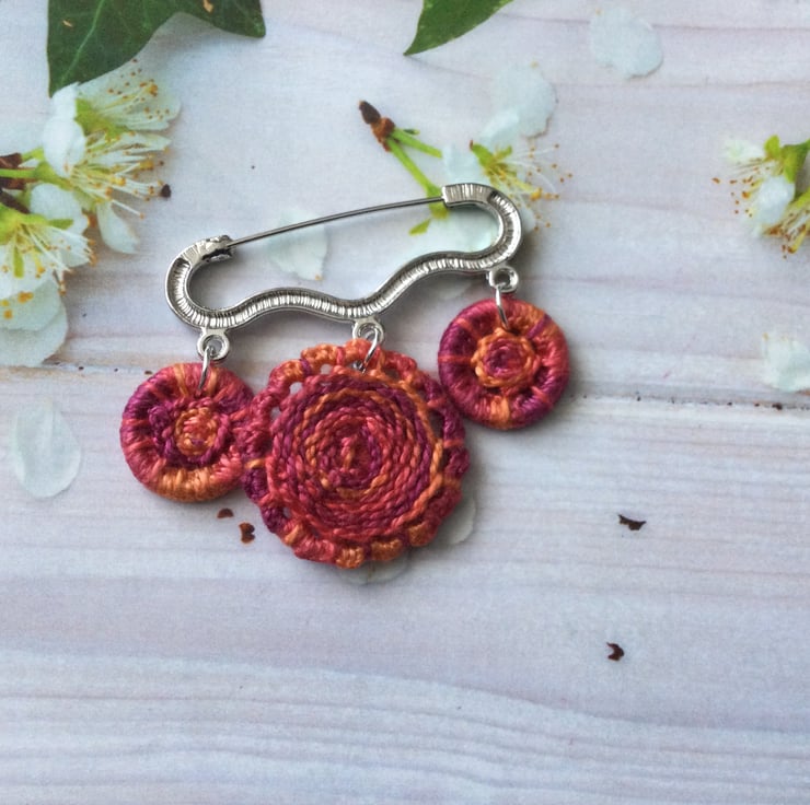 I have made these three Dorset buttons using a colour changing cotton thread on 2 small rings and one flower shaped.