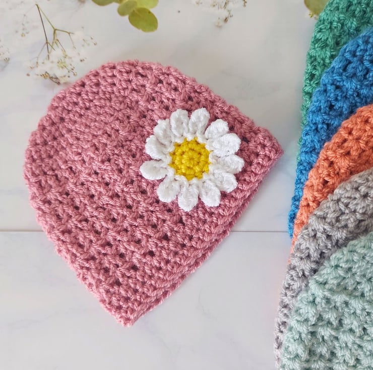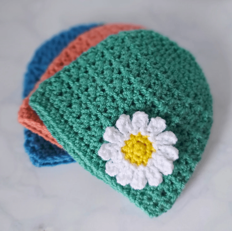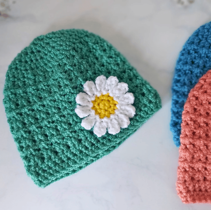 Handmade Crochet Baby Beanie with Daisy Flower
