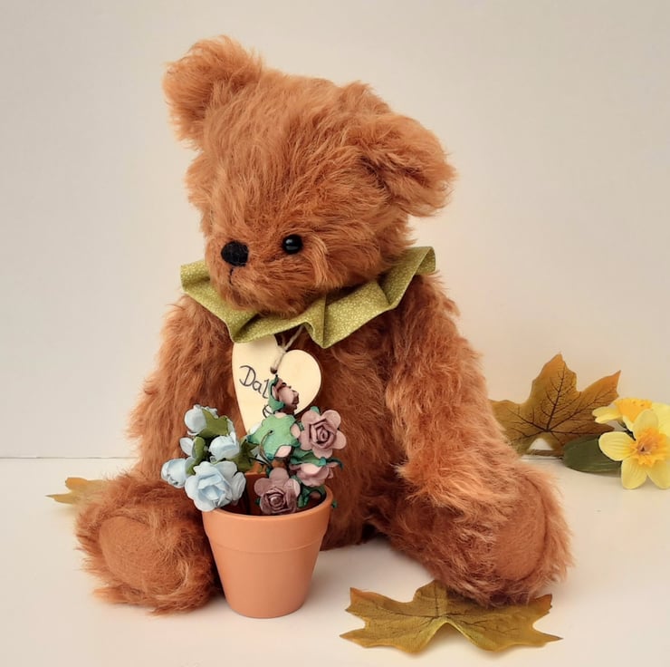 He's a soft natured bear who loves nature, I think his favourite season is summer as he loves to tend the garden and pick the flowers.