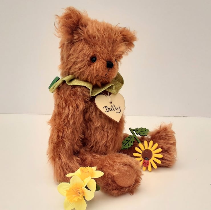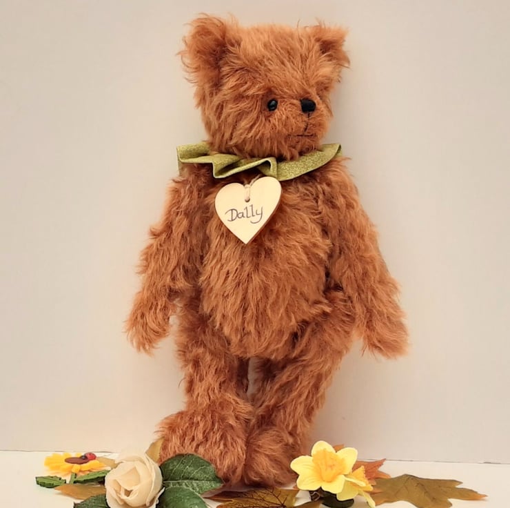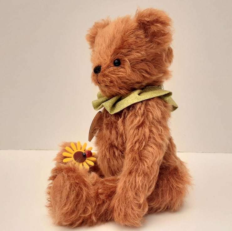 Meet Dally, handmade from luxury 25mm whirl mohair in a rich copper/paprika colouring, one of 2 bears made from this beautiful soft mohair.