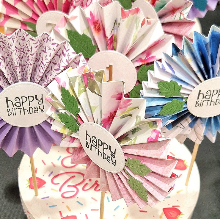 Planning a celebration? Is cake involved? Look no further we have the fanciest best dressed floral fan cake toppers all handmade and finished with green leaves ready to party.