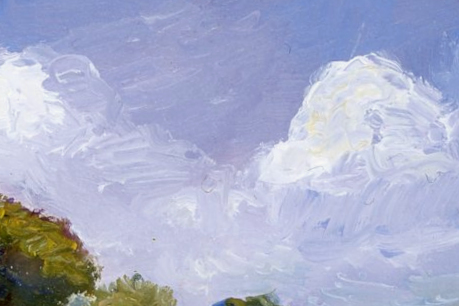 The painting comes with an ivory-coloured mountboard; with aperture for the card, and to fit a 6x8 inch frame. The little painting itself is protected with a sleeve of glassine paper.