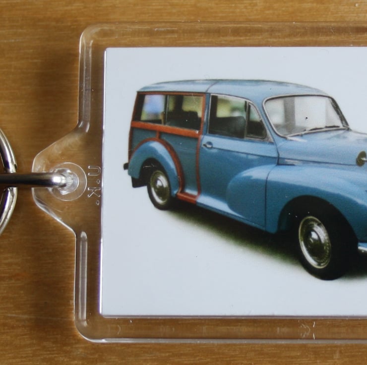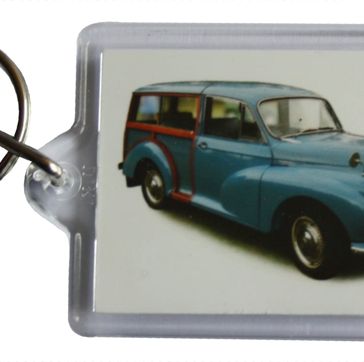 Morris Minor Traveller 1960 (Mid Blue) - Keyring with 50x35mm Insert - Car Fan
