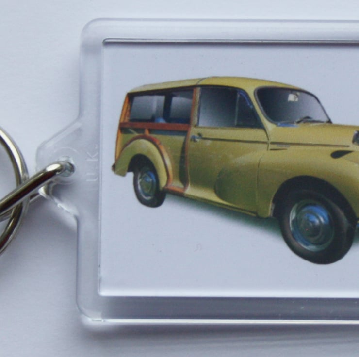 Morris Minor Traveller 1971 (Yellow) - Keyring with 50x35mm Insert - Car Fan