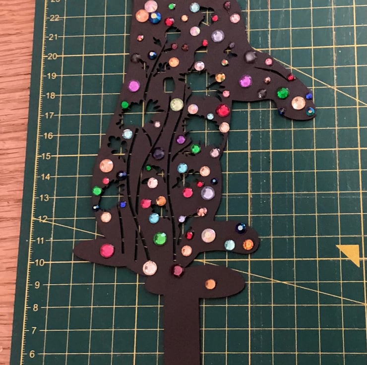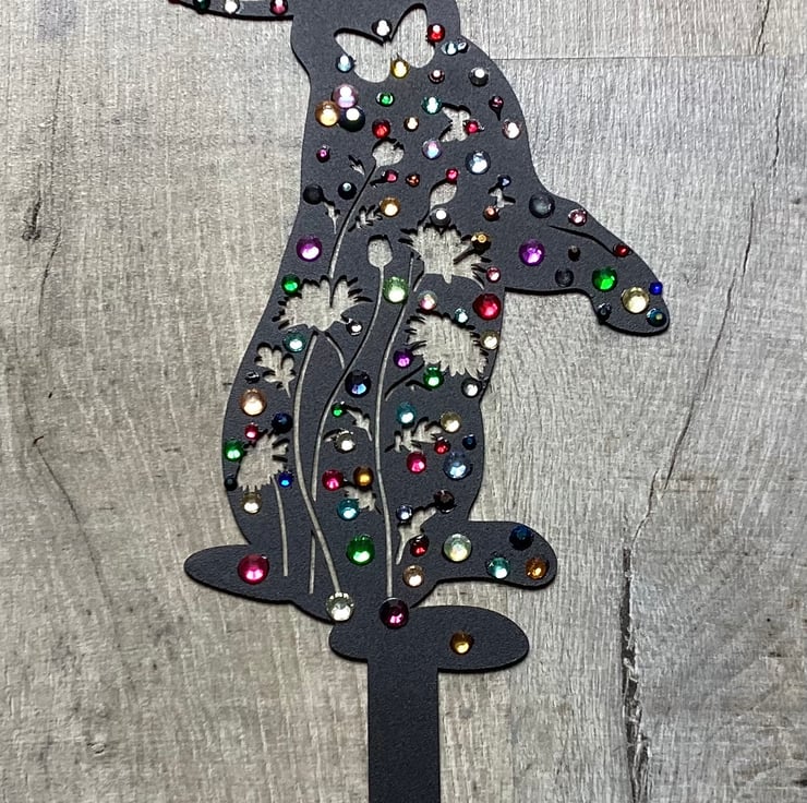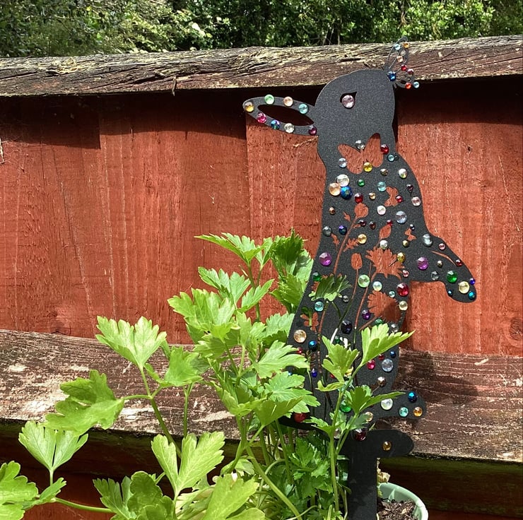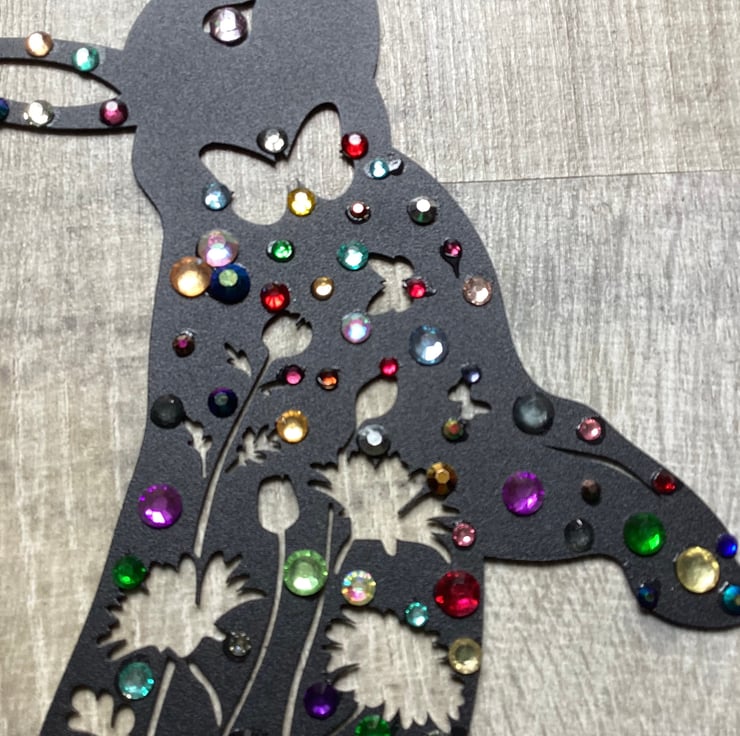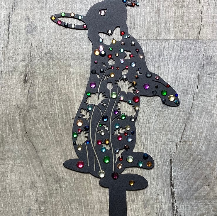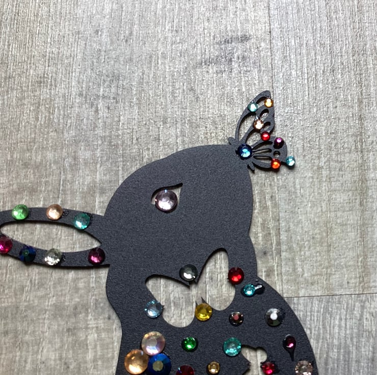 To make it I’ve used metal Bunny garden decoration, embellished it with rhinestones diamanté in different colours and sizes.