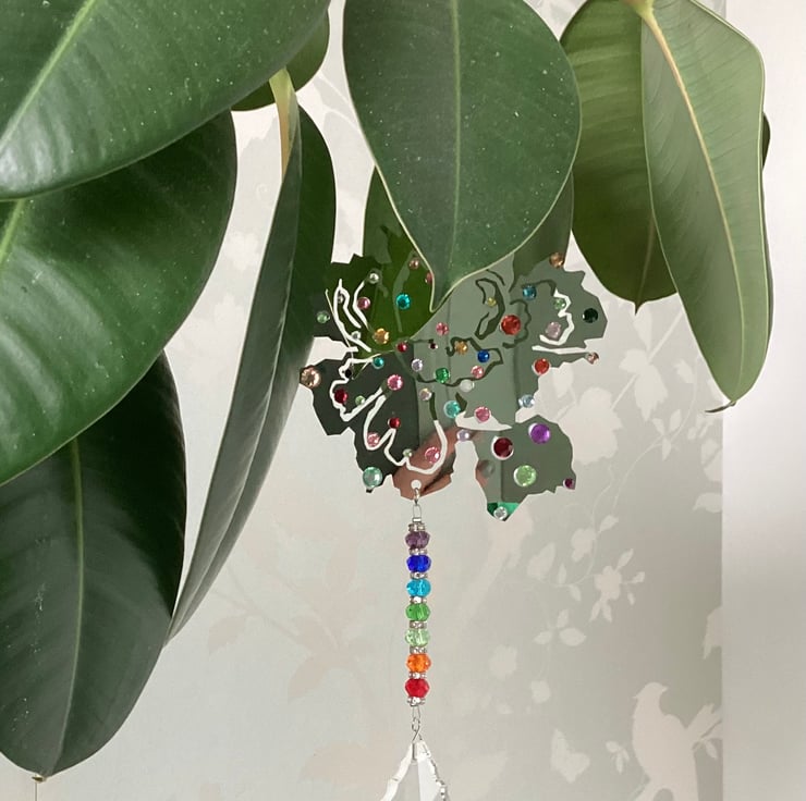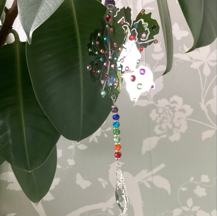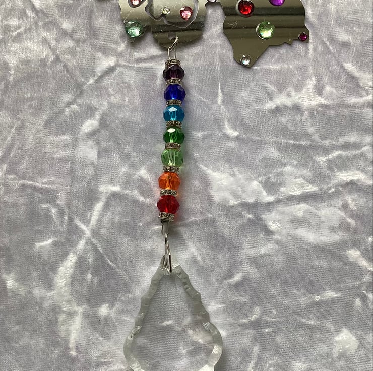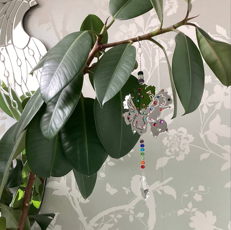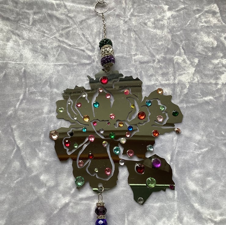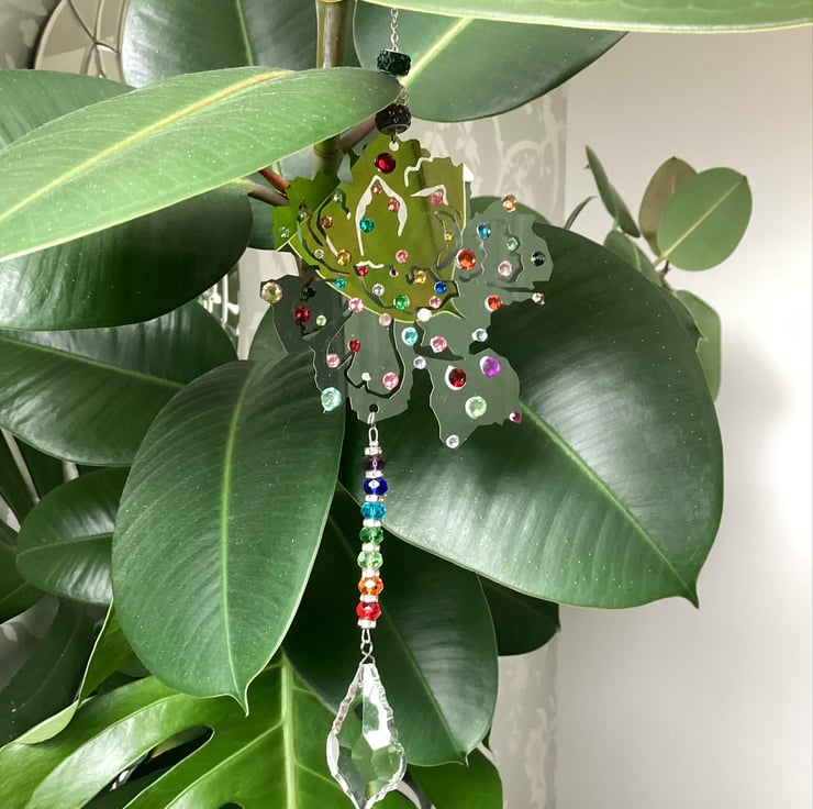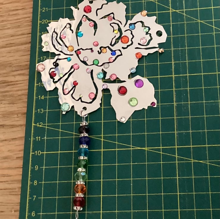 To make it I’ve used Crystal Flower Sun Catcher Prism decoration, embellished it with rhinestones diamanté in different colours and sizes.