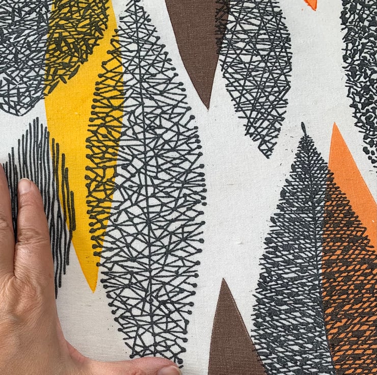 I a few versions of fabric in this style - Pf my orange brown options this one one has the boldest colours with good black details on the leaves.