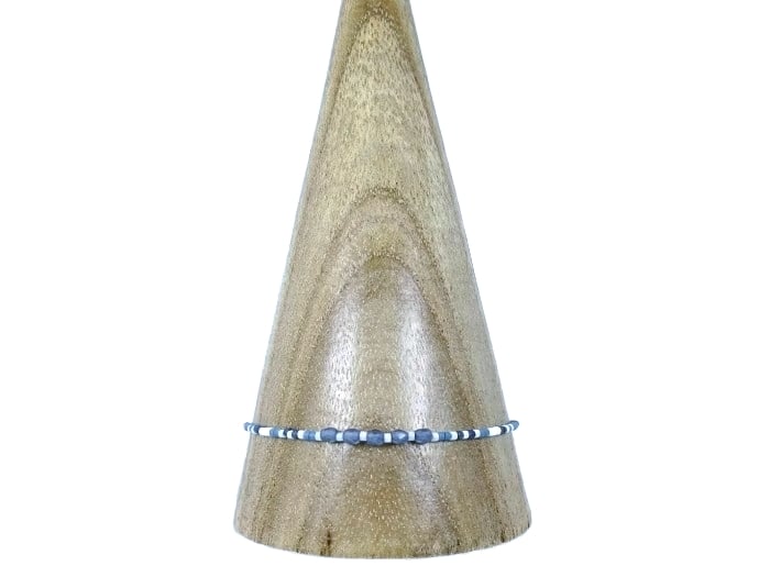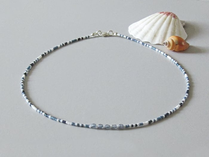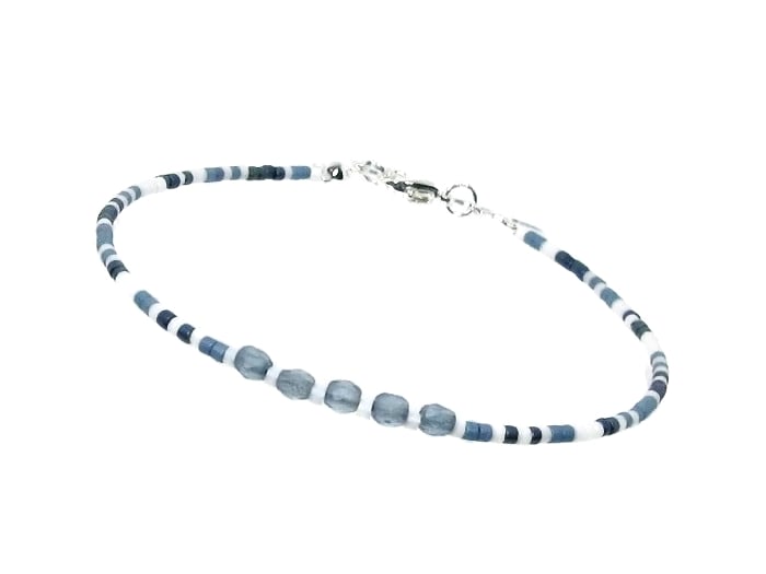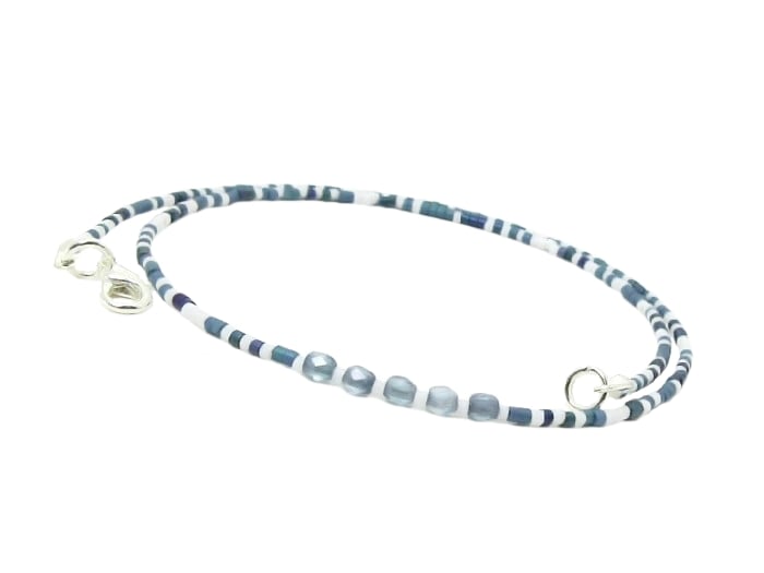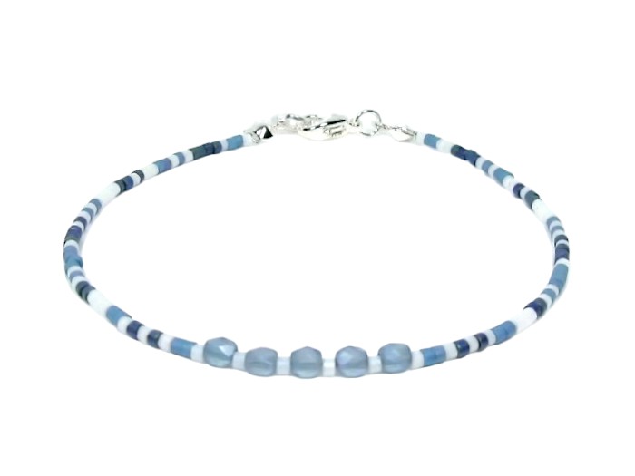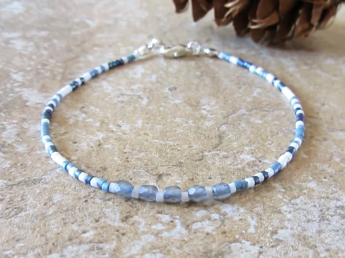 This dainty seed beads fashion bracelet has tiny light blue, dark blue & white highest quality 1.8mm Miyuki Delica seed beads.